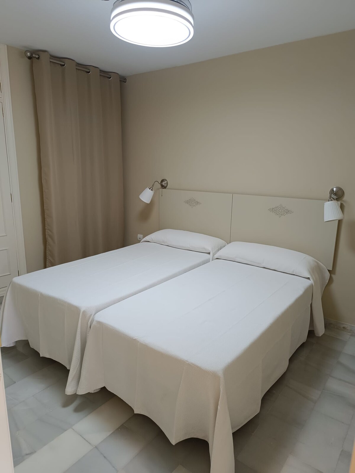 Luminoso y bien ubicado, con cuidados jardines a unos minutos andando de la playa y de las zonas de ocio. Dispone de un dormitorio con dos camas unidas, cuarto de baño, cocina americana, salón con terraza. Posibilidad de cama supletoria en el salón.