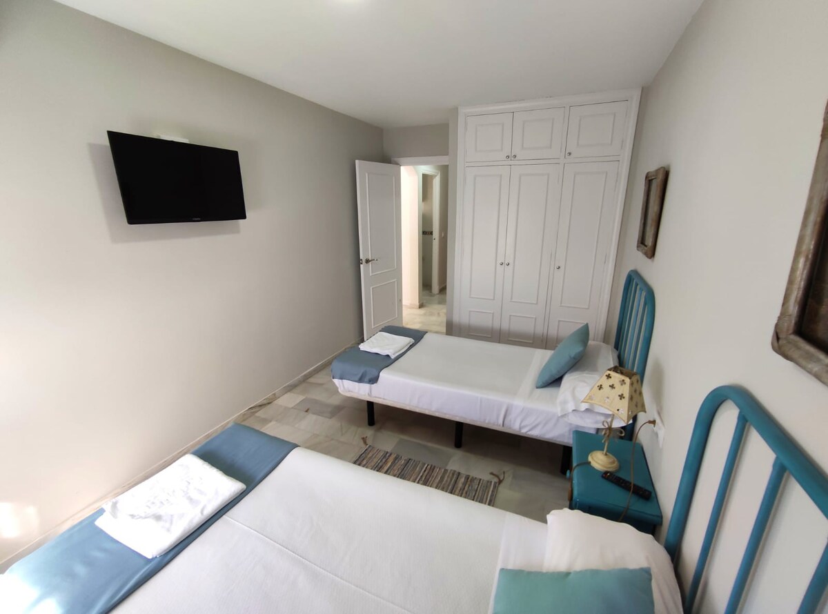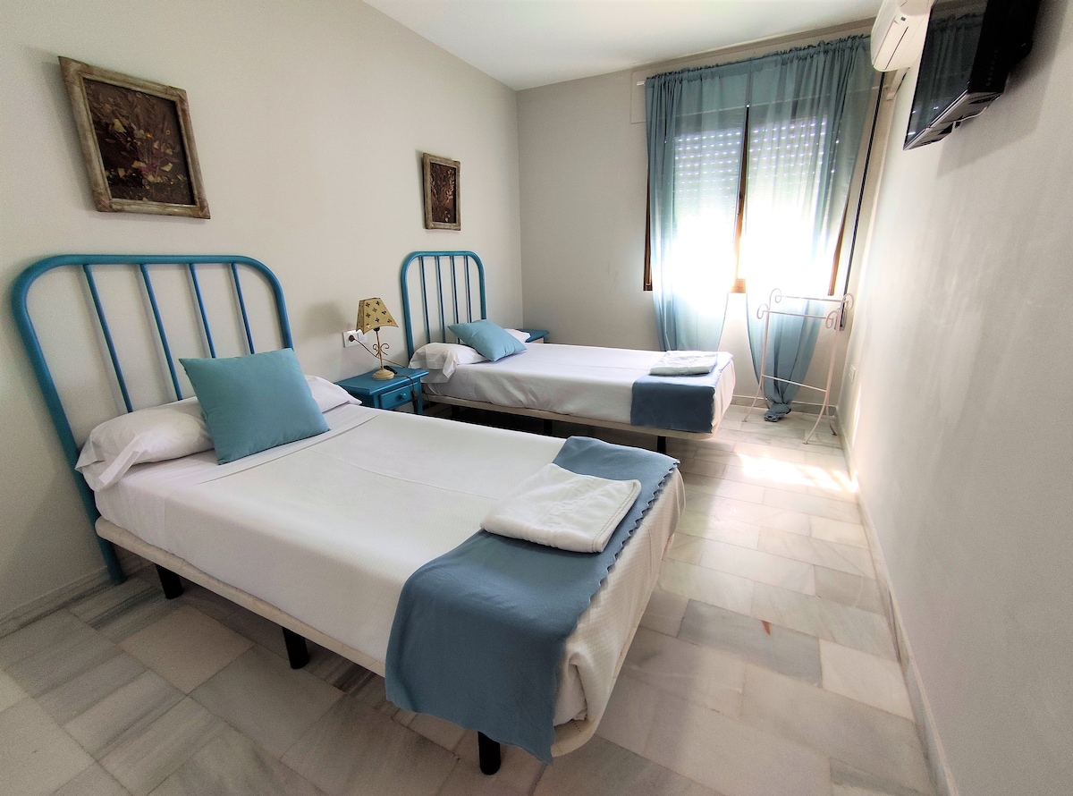 Luminoso y bien ubicado, con cuidados jardines a unos minutos andando de la playa y de las zonas de ocio. Dispone de un dormitorio con dos camas unidas, cuarto de baño, cocina americana, salón con terraza. Posibilidad de cama supletoria en el salón.